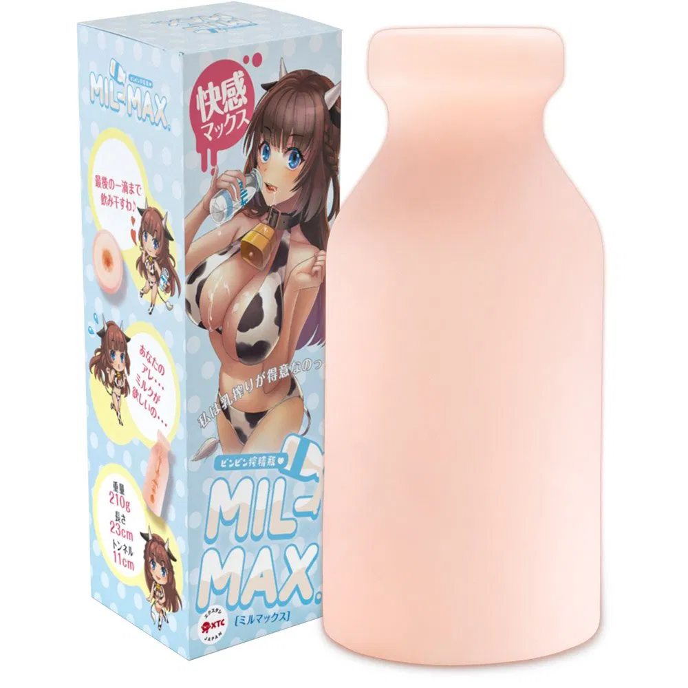The Mil-Max by XTC-Japan embraces a playful milk theme, evident in every detail—from its name to the packaging. The box features a cute anime character in a cow-print bikini, spilling milk over her ample chest while sipping from a milk bottle. Though the packaging is compact, the vibrant illustration adds plenty of personality. The toy itself continues the theme, designed in the shape of a milk bottle, reinforcing the “milk” concept.